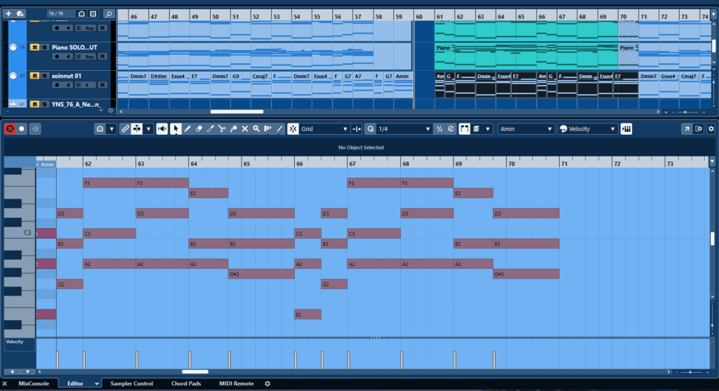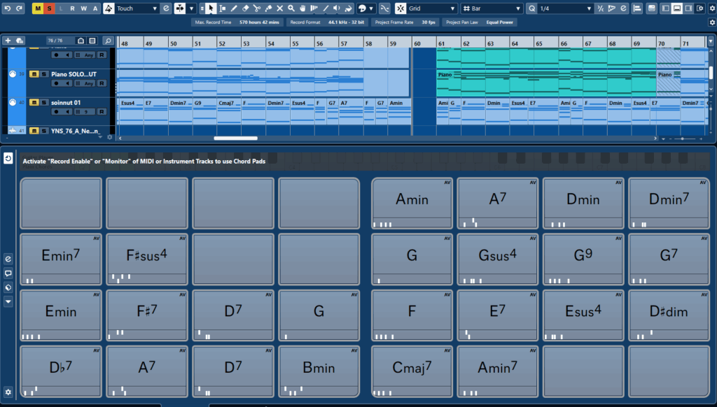 Voi myös täältä ottaa sointuja ja tehdä niitä lisää ja vetää hiirellä Cubasen raidalle miditiedostoksi ja käyttää mitä VST-instrumenttiä hyvänsä ja muuttaa sen valmiiksi audioraidaksi.
